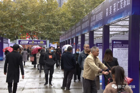 今天是周末,有著“黔江解放碑”之稱的大十字購物廣場人頭攢動,熱鬧非凡一場特殊的招聘會和展銷會在這里舉行。