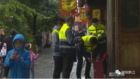 在濯水景區(qū),民兵應(yīng)急分隊(duì)的民兵們從早上8點(diǎn)開始,就穿梭在各個(gè)景點(diǎn),協(xié)助景區(qū)管理部門維持秩序、及時(shí)排查消除各類隱患,為游客提供便民服務(wù)。