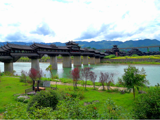 2020年8月23日11點(diǎn),“世界第一風(fēng)雨廊橋”——“重慶黔江濯水風(fēng)雨廊橋”下寬闊而清澈的阿蓬江面上,身穿民族服裝的“阿哥阿妹”俏生生地站在佩戴紅綢和大紅花的喜船上,在艄公的牽引下上演一場(chǎng)別開生面的鵲橋相會(huì),吸引了來自全國(guó)各地的游客駐足打卡拍照。 2020/8/27 13:00:57