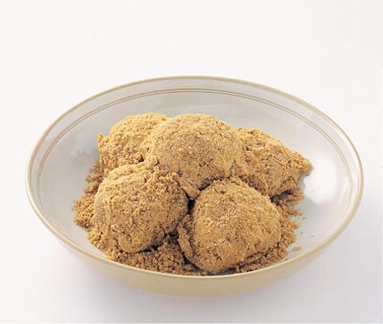 湯圓的一種獨(dú)特的吃法。由炒過的黃豆粉拌芝麻、白糖等制作而成,沾滿黃豆末和白砂糖后即可食用。吃時(shí)滿口..